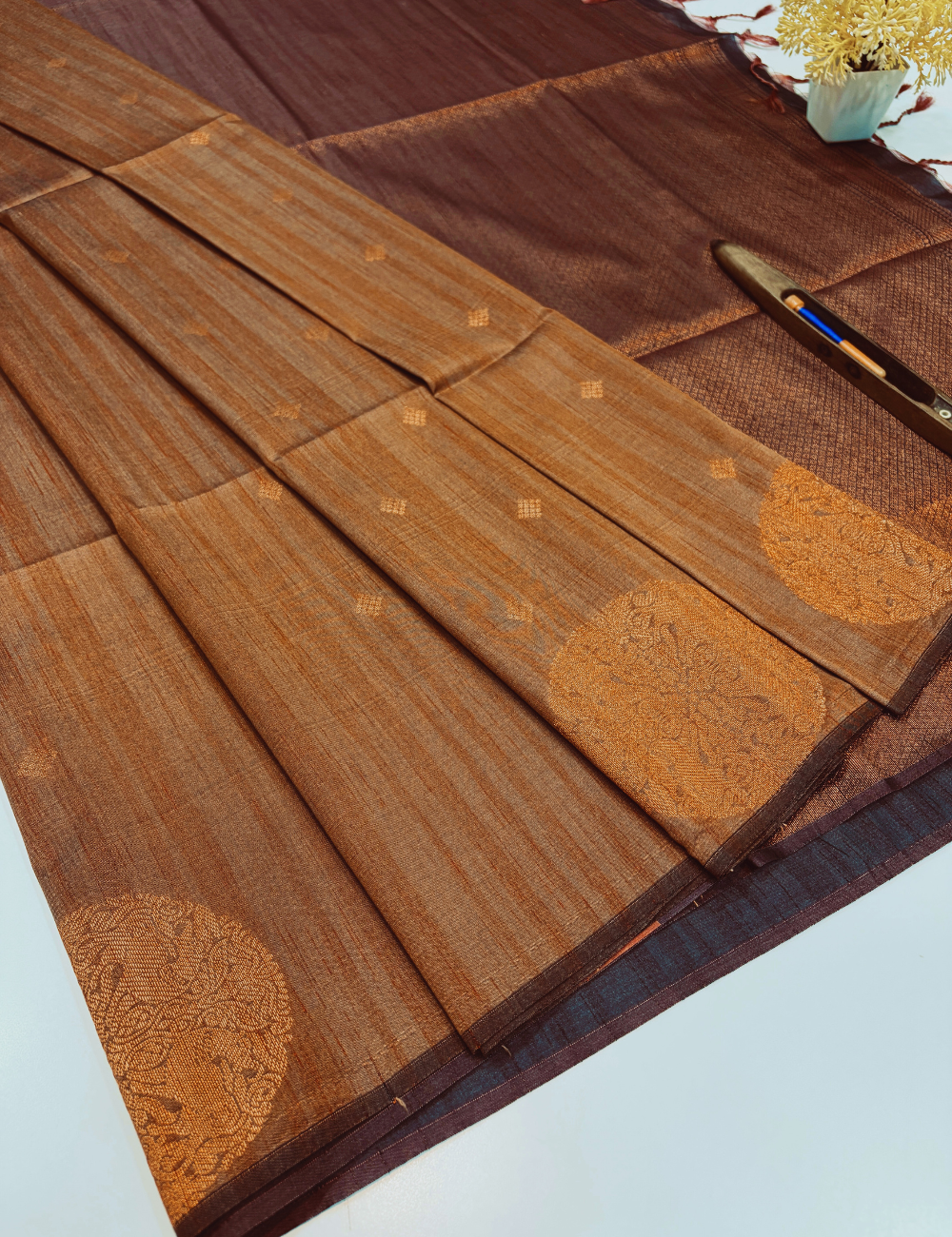 Antique Gold Brown Pure Cotton Saree with Rich Jari Border