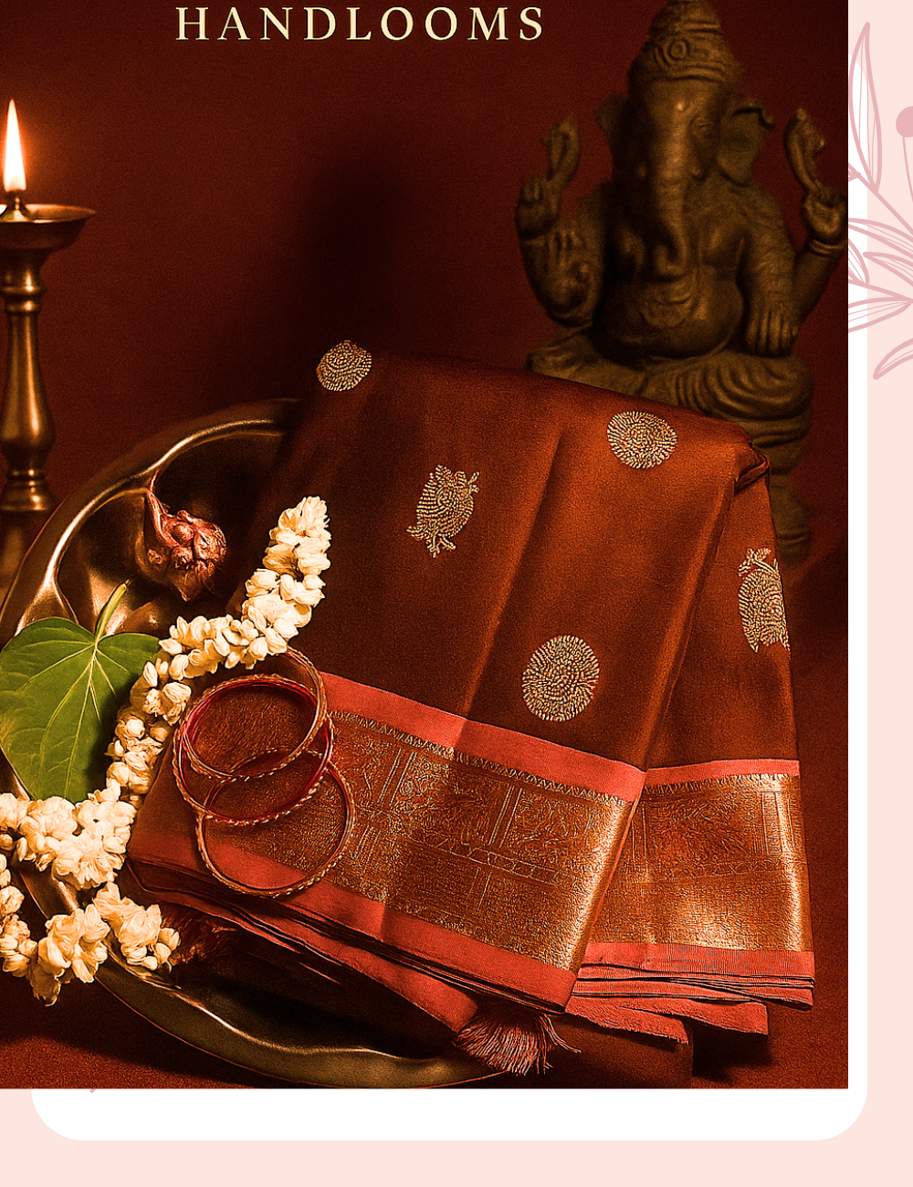 To preserve, promote, and elevate the rich legacy of Indian handloom weaving by offering timeless sarees that celebrate tradition, empower artisans, and inspire the next generation of cultural pride.