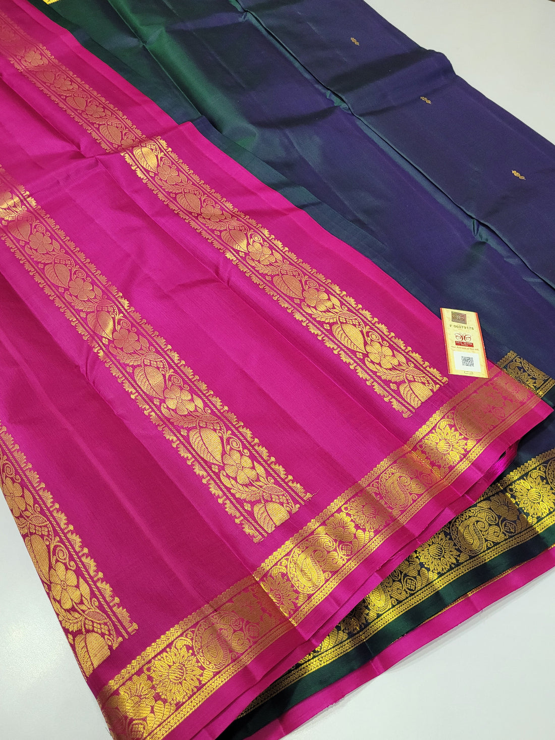 Mesmerising Blue & Green Dual Tone – Handloom Kanchipuram Pure Silk Saree